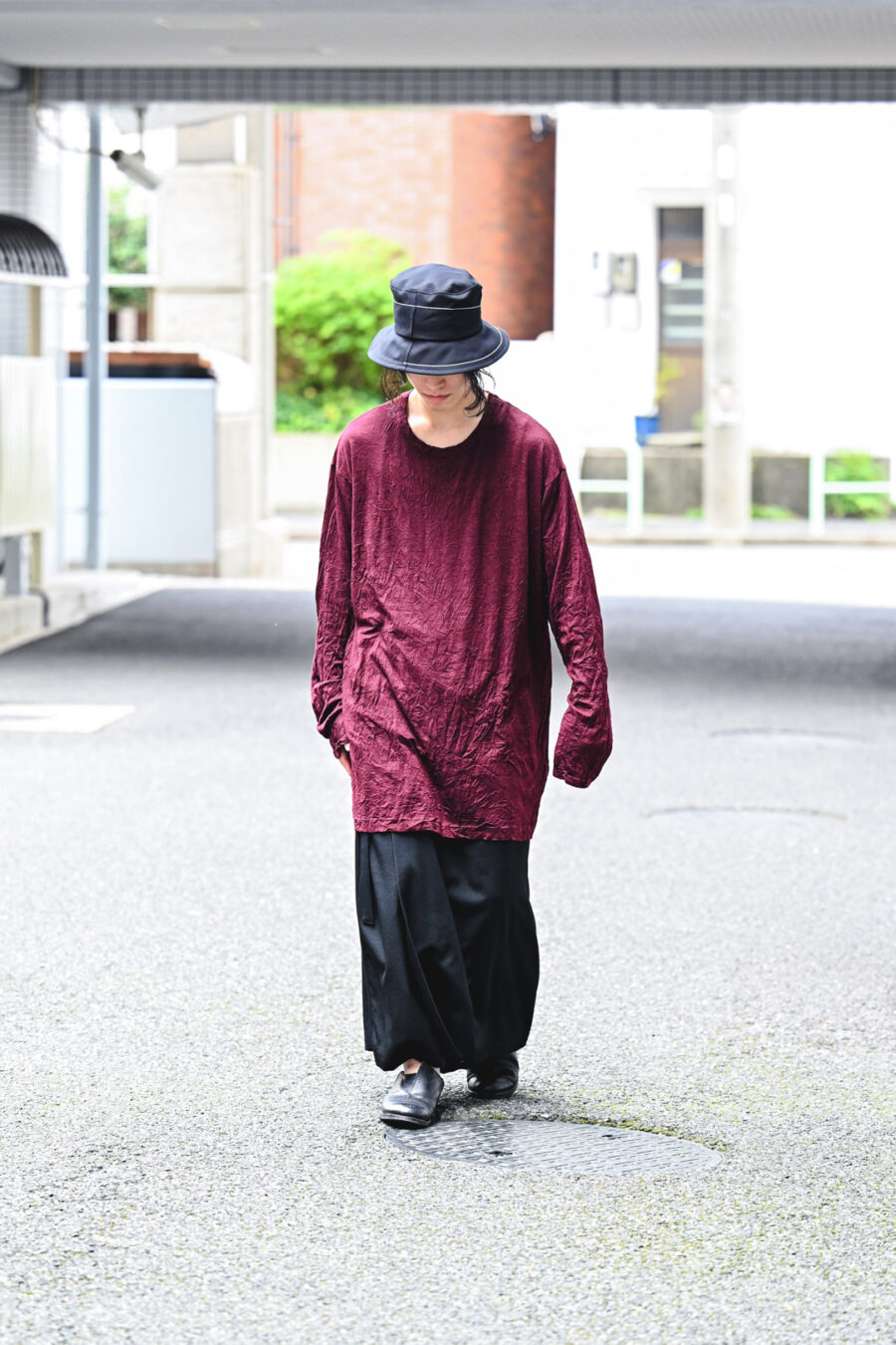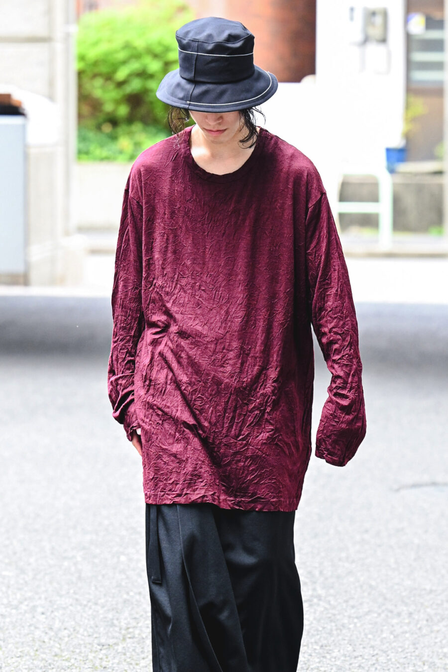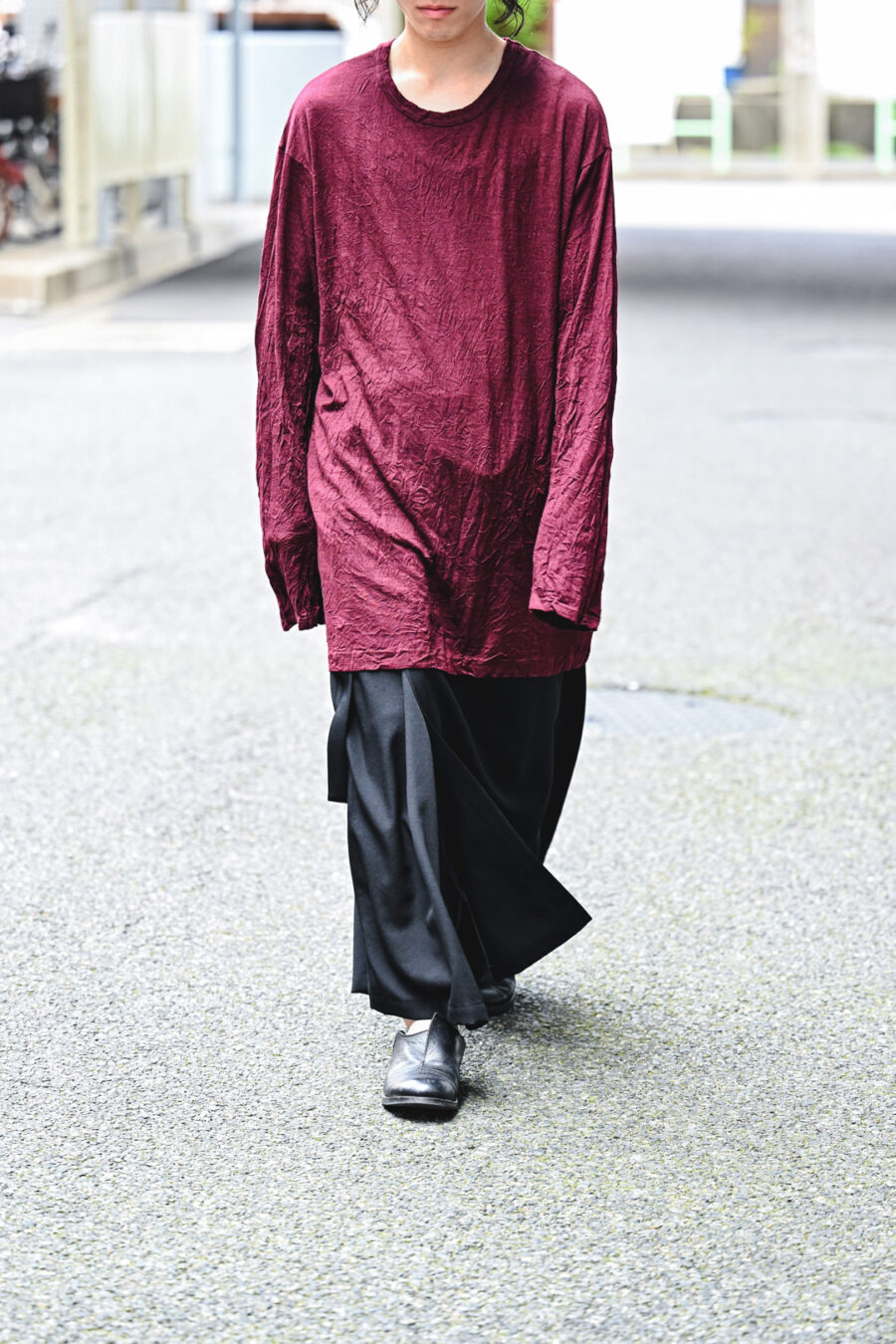Yohji Yamamoto POUR HOMME シワ加工ニットプルオーバー Bordeaux