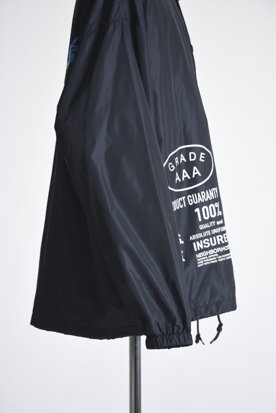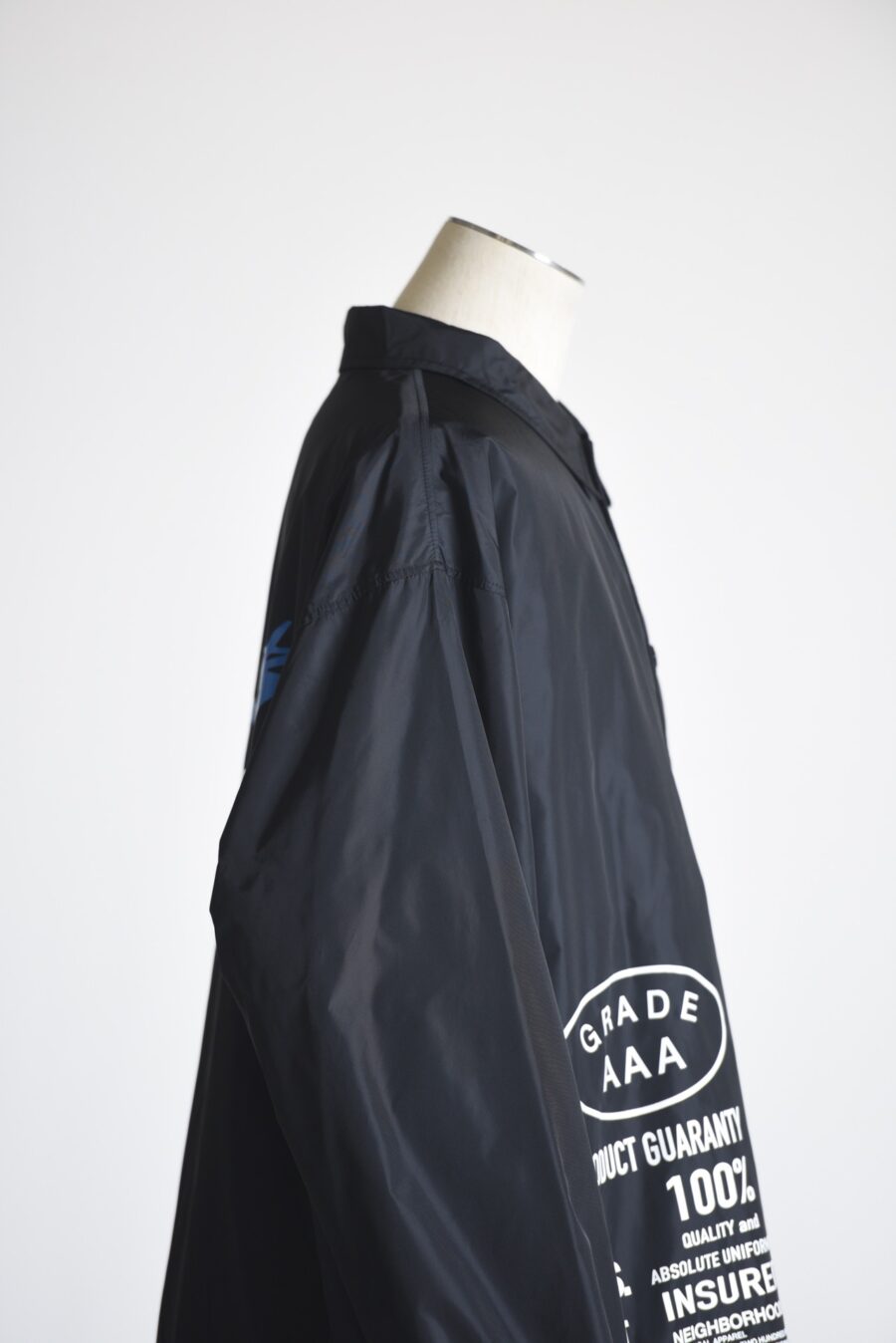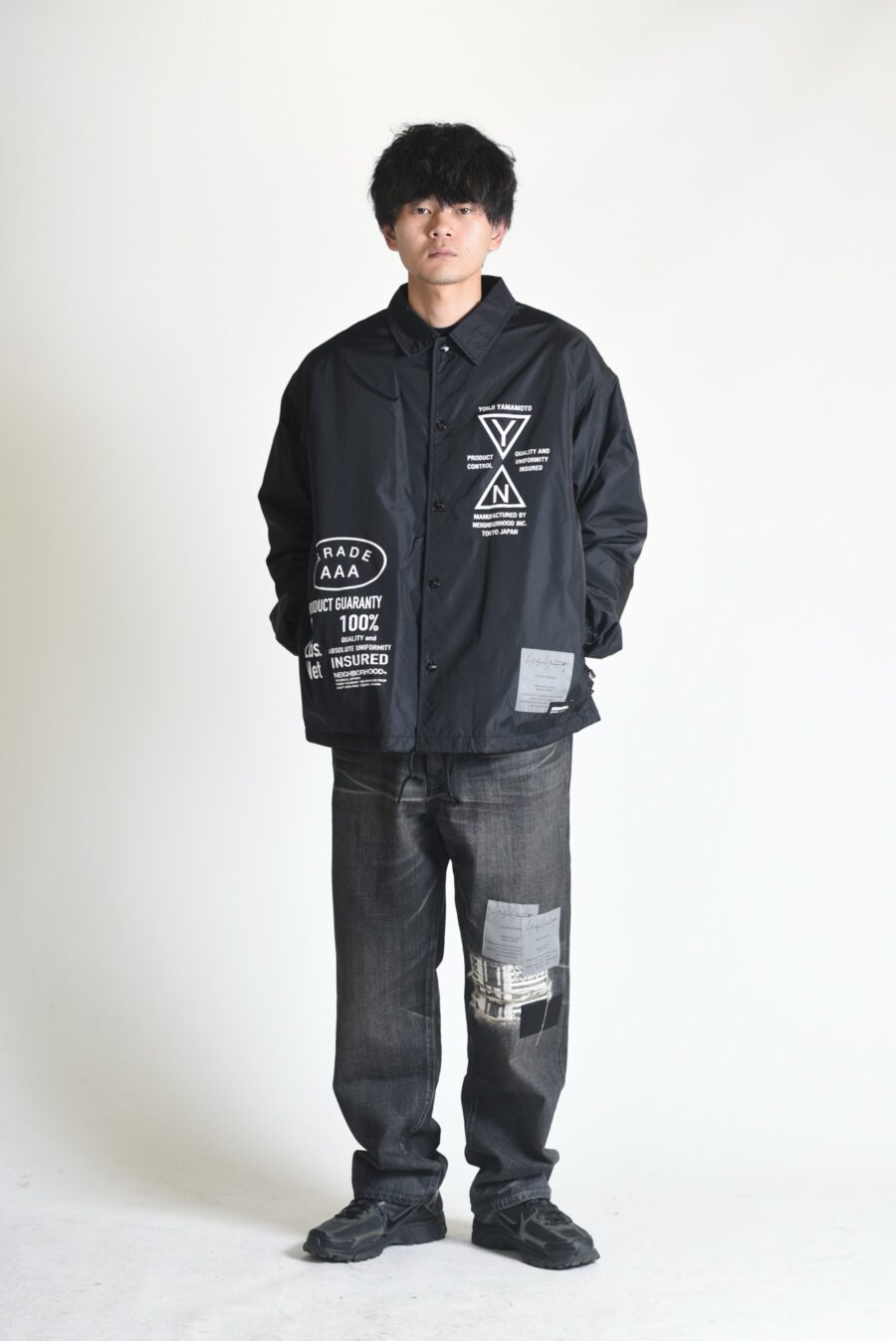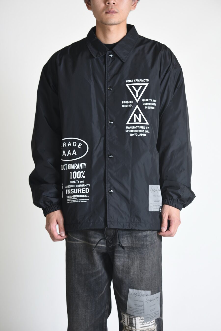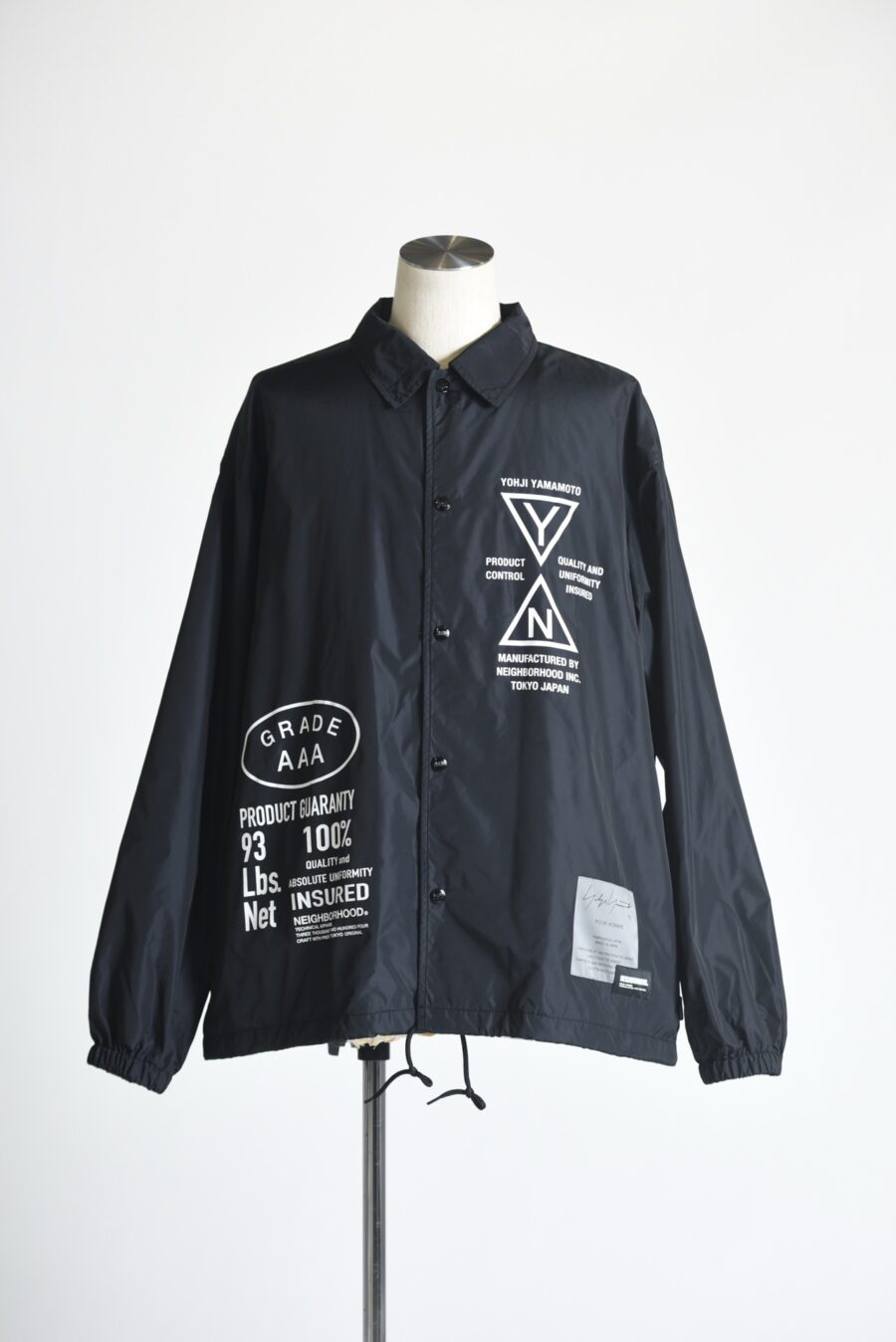 Yohji Yamamoto POUR HOMME × NEIGHBORHOOD 2025A/W ・WINDBREAKER JACKET Item 光沢のあるナイロンタフタ生地で仕立てた 防風性と保温性のあるコーチジャケットです。 各ブランドのロゴとグラフィックを各所にプリントし、 スナップボタンやジップはオリジナルのアイテムを採用しています。 裏地には身頃に肌触りの良いコットンの天竺生地を、 袖裏には袖通しの良いポリエステルのタフタ生地を用いております。 夏場以外の幅広いシーズンでご利用いただけます。 Material Main : Nylon 100% Lining : Cotton 100% Sleeve Lining : Polyester 100% Size Size:5 着丈76cm 身幅69cm 肩幅58cm 袖丈64cm Product Code HK-Y91-600