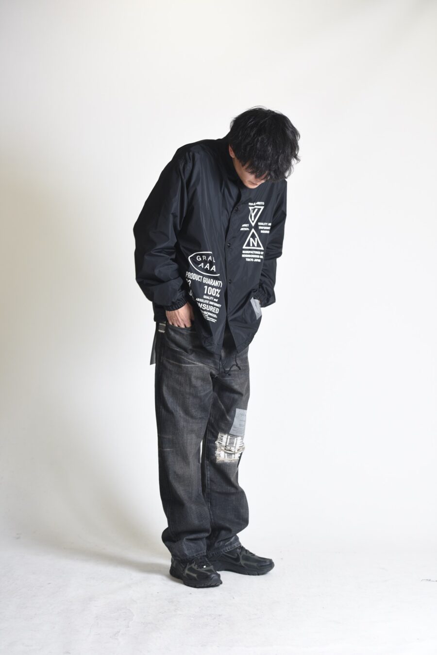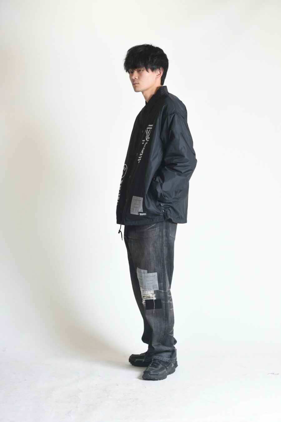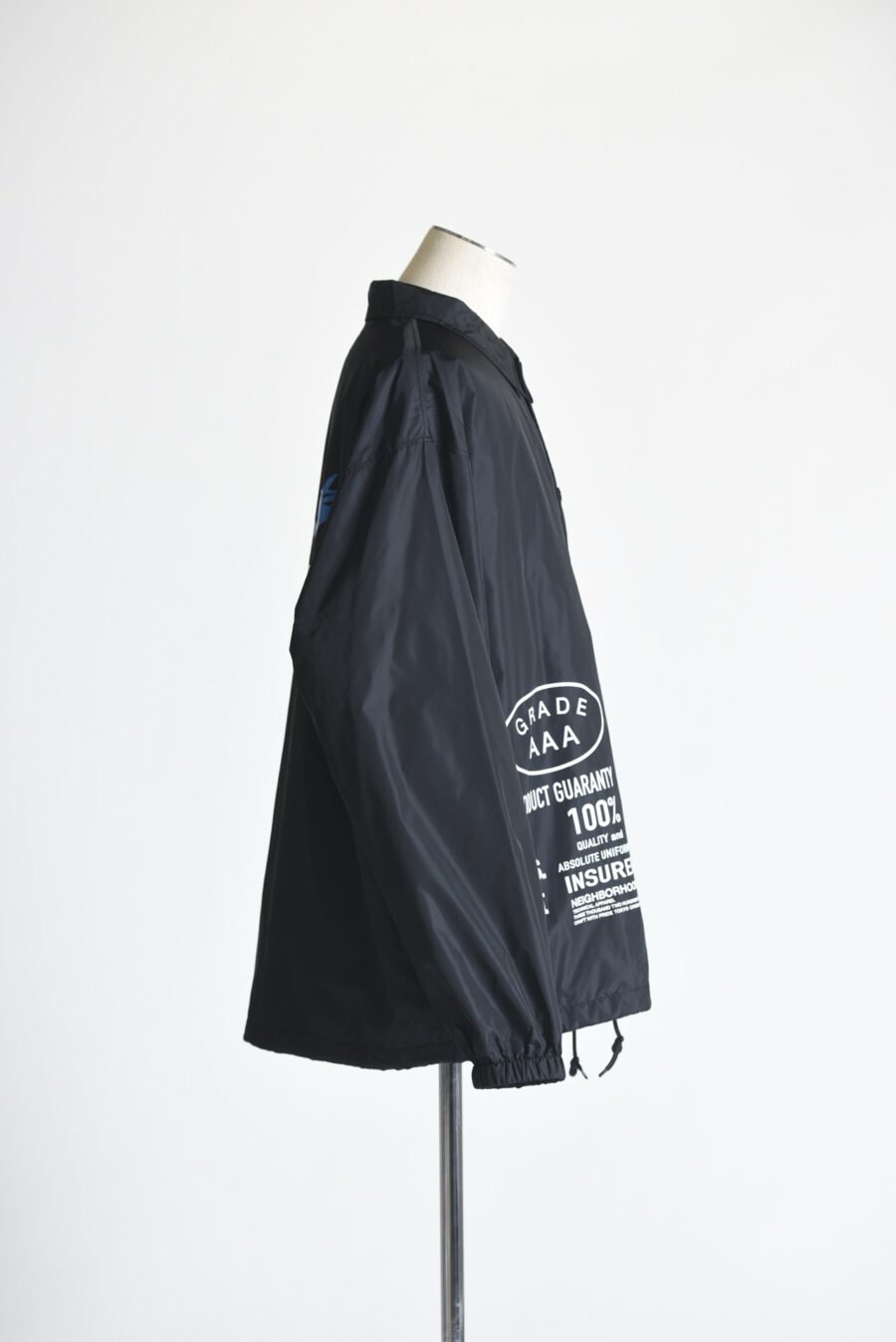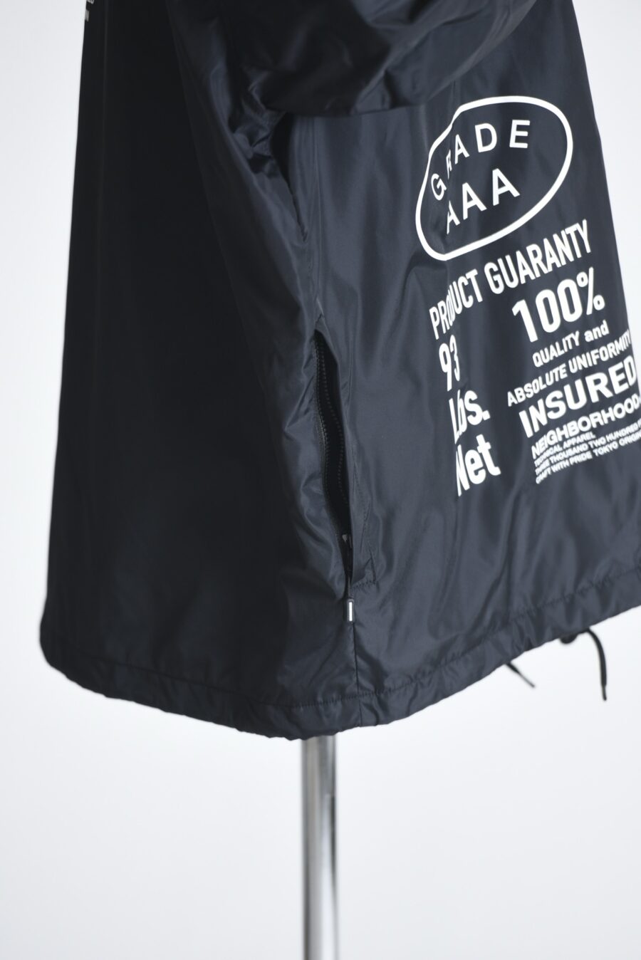 Yohji Yamamoto POUR HOMME × NEIGHBORHOOD 2025A/W ・WINDBREAKER JACKET Item 光沢のあるナイロンタフタ生地で仕立てた 防風性と保温性のあるコーチジャケットです。 各ブランドのロゴとグラフィックを各所にプリントし、 スナップボタンやジップはオリジナルのアイテムを採用しています。 裏地には身頃に肌触りの良いコットンの天竺生地を、 袖裏には袖通しの良いポリエステルのタフタ生地を用いております。 夏場以外の幅広いシーズンでご利用いただけます。 Material Main : Nylon 100% Lining : Cotton 100% Sleeve Lining : Polyester 100% Size Size:5 着丈76cm 身幅69cm 肩幅58cm 袖丈64cm Product Code HK-Y91-600