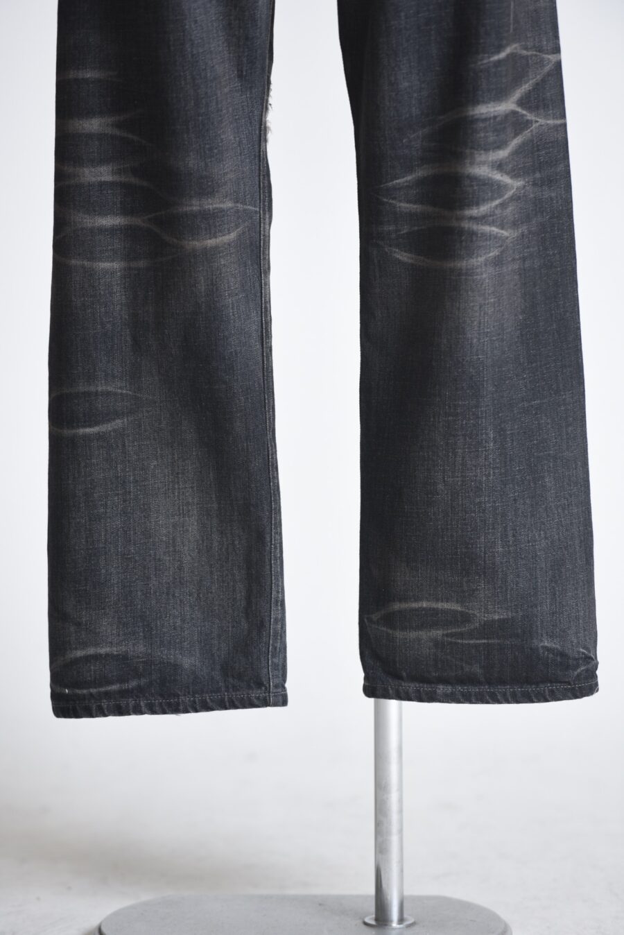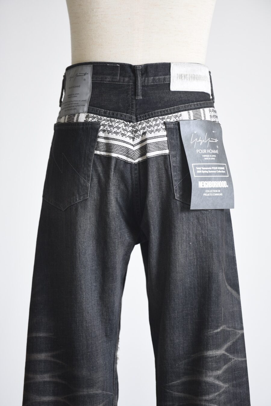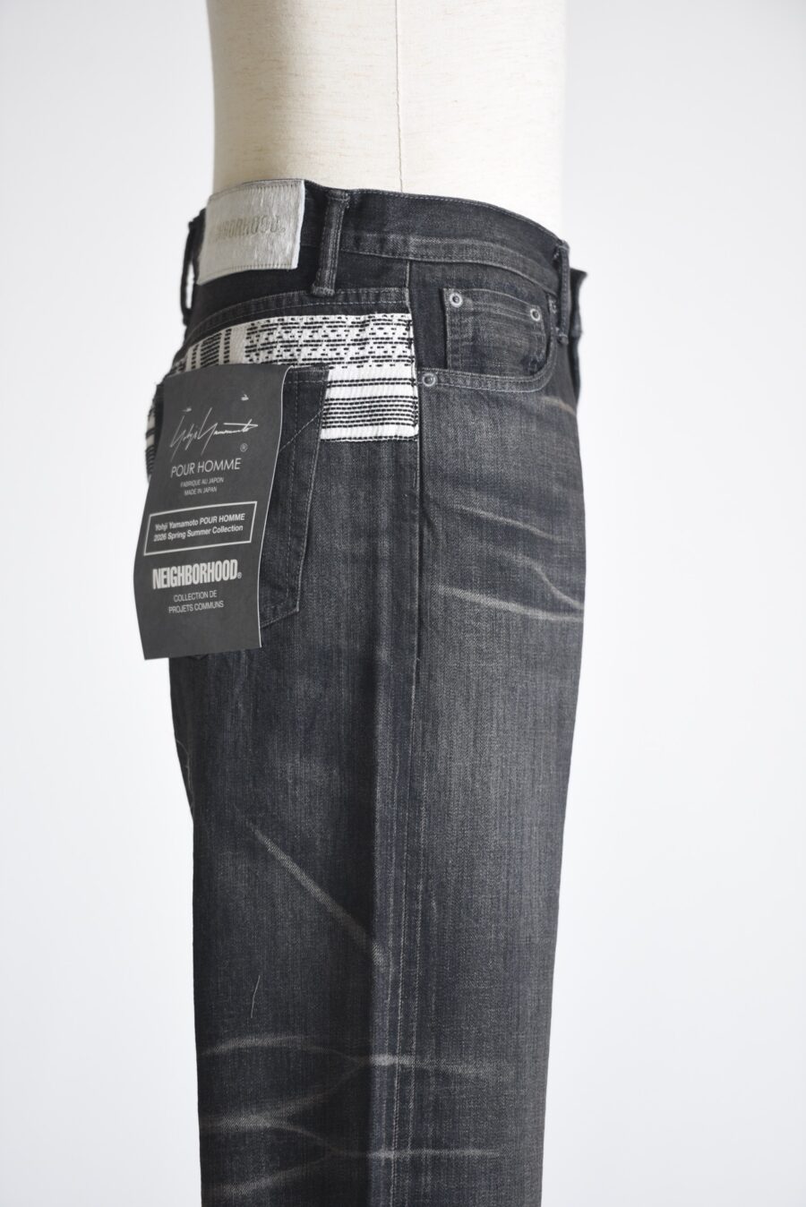 Yohji Yamamoto POUR HOMME × NEIGHBORHOOD 2025A/W ・SAVAGE DENIM DP BASIC PANTS Item 12ozのオリジナルのセルビッチデニムをベースに、 NEIGHBORHOODの代名詞とも言えるサベージ加工を施しています。 ダメージ加工やリメイク加工、ハードな洗い加工など リアルな経年の変化を手間暇をかけた加工によって施した デニムパンツです。 背面にはシェマグジャカードの切り替えがされています。 オリジナルのボタンやリベット、ワッペン、革パッチ、 シグネチャーテープ、N型のデザインステッチなど 随所に拘りのディティールを採用しています。 適度にゆとりを持たせつつ、裾にかけて緩やかにテーパードさせた 定番のベーシックシルエットです。 Material Main : Cotton 100% Size Size:3 ウエスト84cm 股上33.5cm 股下74.5cm 裾幅21.5cm わたり34cm Size:4 ウエスト89cm 股上34cm 股下76cm 裾幅22cm わたり35cm Size:5 ウエスト95cm 股上34cm 股下80cm 裾幅22.5cm わたり36cm Product Code HK-P94-065